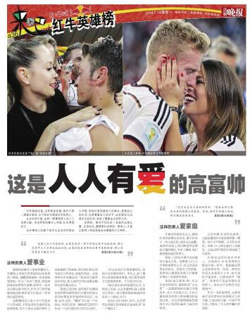 《每日电讯报》的报道则认为,从拼劲上来讲,从这支德国队身上甚至可以看到二战后德国重新崛起时的品质——勤奋、肯干!