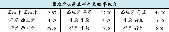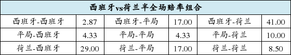 西班牙不败赔率仅1.18 内讧荷兰拿分不易