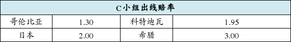在C小组中,哥伦比亚的实力最强,他们的出线赔率1.30,排名第一,很有希望夺得一个出线名额。希腊出线1赔3排名垫底,虽然这支球队有着神话底蕴,但拼起硬实力来,还是稍弱。竞争最为激励的便是日本(1赔2)与科特迪瓦(1赔1.95)。首战,将直接影响到两队出线的命运。