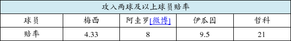 内马尔揭幕战两球进账,范佩西、罗本双双独中二元羞辱西班牙,目前这三人并列领跑射手榜。梅西球王也不甘落后,本场博彩公司开出了攻入两球及两球以上赔率榜,梅西以1赔4.33的赔率最低。他的锋线搭档将在阿圭罗和伊瓜因之间产生,目前这俩哥们也在本场攻入两球及以上榜单上分别以1赔8和1赔9.5紧随梅西之后。波黑阵中最被看好能取得两粒入球的当属其主力中锋哲科,不过他的赔率高达1赔21,比阿根廷阵中三把中场利器迪马利亚、帕拉西奥和拉维奇的赔率都高得多。从这组数据来看,本场比赛其实已经失衡,注定是阿根廷狂攻,波黑死守尽量减少失球,留足底气与后面两个对手厮杀。