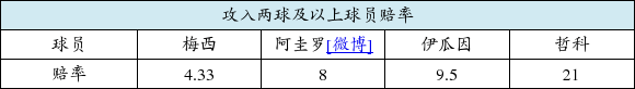 梅西进两球及以上1赔4.33 攻守大战已现形