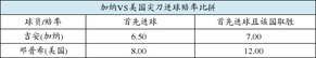 美国阵中驰骋英超的尖刀邓普希是此前两次落败于加纳的亲历者,无奈年事已高的他并没有得到赔率的太多看好。博彩公司开出的邓普希打入首个进球的赔率为1赔8,而他打入首粒进球且美国获胜的赔率为1赔12更高。赔率数据对比可见,双方阵中尖刀人物的比拼将决定本场比赛的胜负走势。但愿本届世界杯之后,双方在若干年内不要再遭遇。
