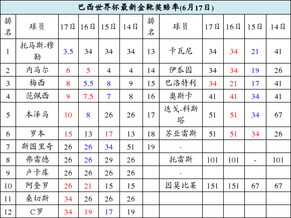 北京时间6月17日凌晨,德国4-0轻取葡萄牙,上届世界杯金靴得主托马斯-穆勒在比赛中上演巴西世界杯上的第一个帽子戏法。bet365即时更新了金靴赔率,穆勒从赛前的第15位飙升至第一,赔率从34.00狂泄至3.50。穆勒一出,属于争锋!内马尔、梅西均被甩在身后,C罗等人更是已成浮云。