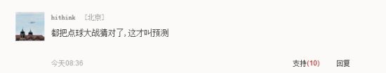 还有一些网友更是大加赞赏,来自北京的网友hithink则说:都把点球大战猜对了,这才叫预测!
