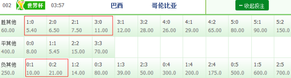 巴西vs哥伦比亚 比分赔率(竞彩)