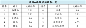 北京时间7月5日0点,法国和德国将为一个世界杯4强名额展开对决。德法大战既是传统豪强的碰撞,也是各路球星的较量,必将充满众多看点。在博彩公司开出的进球赔率中,两大豪门的箭头人物本泽马和穆勒稳居前二,克洛泽位列第三,此战仍被看好超越大罗。而助攻赔率中,状态开始好转的厄齐尔,意外被法国“矮脚虎”瓦尔布埃纳夺去头名。