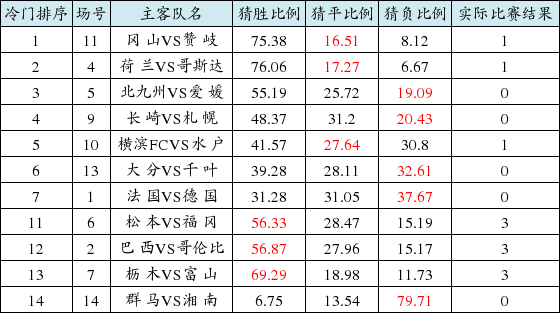 足彩冷门排序