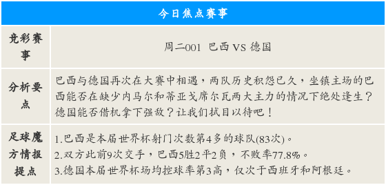 [足球魔方]7月8日竞彩报告:德国战车可不败