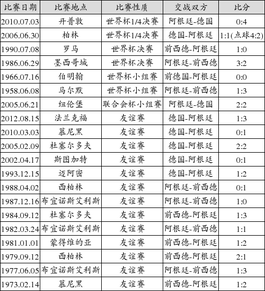 下面是世界杯决赛各场比赛的历史交锋战绩: