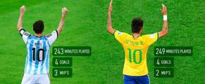 足球是11个人的游戏,但是几乎所有人都期待能看到有人像当年的马拉多纳那样凭借一己之力将球队带上世界巅峰的戏码上演。而纵观本届世界杯,相比于在德国、荷兰的整体足球中发挥的游刃有余的穆勒、罗本、范佩西等人,梅西与内马尔无疑是更有潜力成为凭一己带队冲击冠军的孤胆英雄。