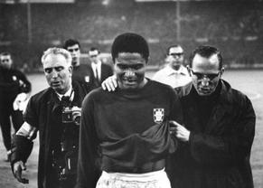 哈梅斯-罗德里格斯在今晨的哭泣让人难忘,可惜他离巨星标准还有点远。不过哈梅斯在本队0比2落后时,打入一个点球的经历,到是让人联想起66年世界杯,时年23岁的尤西比奥,在葡萄牙对阵东道主英格兰[微博]的比赛中,“黑豹”也是在本队0比2落后之时,打入一个点球,但未能阻止本队最终落败。在礼节性和几位英格兰队员握手之后,走下场的尤西比奥难以抑制心中的情绪,走着走着就大哭起来,边哭边拿红色战袍来擦眼泪,葡萄牙队的几位“老同志”,赶紧过来把情绪看上去难以控制的尤西比奥扶出了场地。