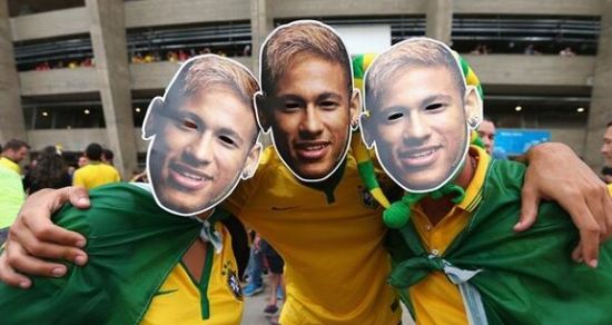 全场球迷佩戴面具力挺内马尔 巴西球迷以这样的方式支持他们心中的偶像