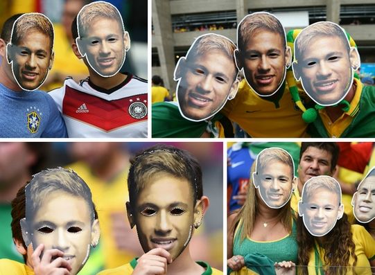 在本场巴西同德国的半决赛前,就有消息指出,巴西球迷策划在球场上集体佩戴内马尔的面具以支持他们心中的英雄。赛前,有球迷将内马尔的头像面具图纸上传到了网上供大家下载并进行制作。巴西球迷表示虽然内马尔没法到场,但球迷们会“让内马尔到球场”。届时将有近6万的“内马尔”出现在米内罗竞技场的看台上。