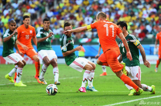 荷兰与墨西哥在接近40度的高温中缠斗了90分钟,最终橙衣军团凭借罗本在最后时刻赢得的点球获得了胜利。绊倒罗本的墨西哥队长拉斐尔·马科斯坚决否认自己有任何犯规的动作。“那不是个点球,是他故意碰到我的。裁判以为是我去碰了他,所以才判了点球。这球不是,但上半场我的一次犯规其实是点球。”