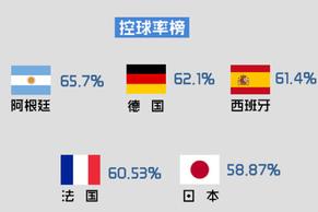 欧美豪强拥有较高的控球率不足为奇,前5的行列里只有日本不是世界冠军队,较高的控球率说明蓝武士已具备强队基础,日本队在本届比赛中的控球打法虽然并不成功,但球队日后完善阵容打发后将更加可怕。