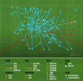 可以看出,鲁尼的活动区域比较零散,击中在中前场,而亨德森和杰拉德主要坐镇中场中路,与意大利的三中场对抗。