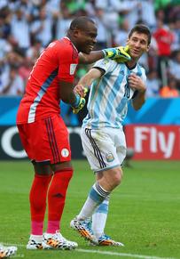 在阿根廷3比2战胜尼日利亚队的比赛中,梅西上半时连进两球,这让尼日利亚门将恩雅马颇感无奈,中场休息时,他在球员通道甚至跟主裁判里佐利开始“抱怨”。