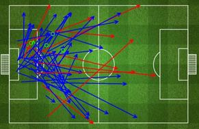 诺伊尔本场数据:蓝箭头为成功传球,红色为不到位传球,绿色圆圈代表成功解围。(图片:FourFourTwo)