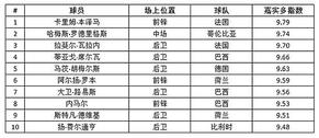 本泽马和哈梅斯•罗德里格斯领衔最新一轮嘉实多指数排行榜
