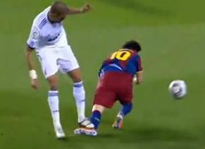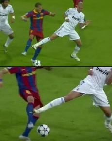在2010/11赛季欧冠半决赛第1回合中,佩佩的红牌离场让皇马陷入被动。皇马上下都讽刺阿尔维斯在演戏,但事实上,无论阿尔维斯是否被踢到,佩佩的动作都是一个恶意伤人的暴力动作。如果没有球的阻挡,阿尔维斯就很可能遭遇断腿横祸,被出示红牌理应没有争议。