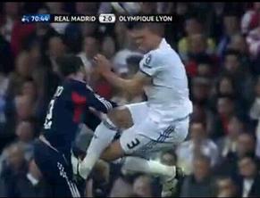 同样在这场比赛中佩佩还对利桑德罗有过一记直接的跳起“膝顶”。