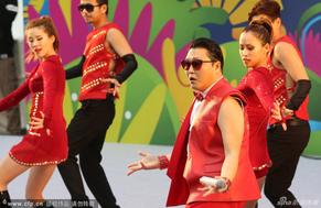 18号上午5点,凭借一曲《江南style》一炮走红全球,绰号鸟叔的韩国歌手朴载相在永东大道COEX楼前的临时舞台上为韩国队加油,演唱了《江南Style》、《Gentleman(绅士)》、《Champion(冠军)》等8首歌曲。