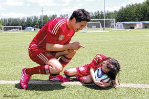 田亮日前在微博晒出和女儿森碟一起踢球的照片