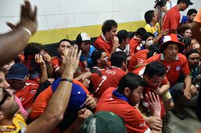 新华社里约热内卢6月18日体育专电(记者王帆 潘毅 郑道锦)B组第二轮西班牙与智利的比赛18日16时在里约热内卢的马拉卡纳球场举行,赛前约35分钟左右,百余名智利球迷强行闯入球场新闻中心,与现场保安发生冲突,导致部分办公家具损坏,事后约50名球迷被羁押。