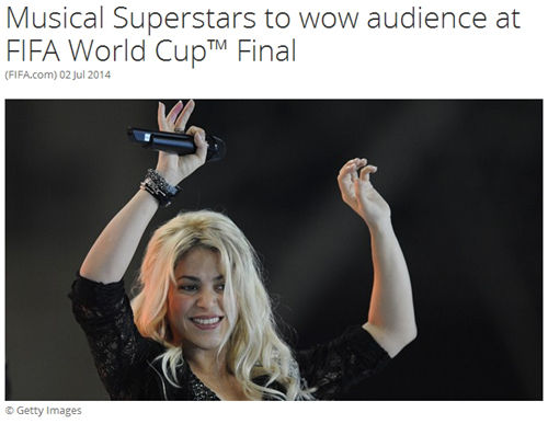 北京时间7月3日,巴西世界杯八强悉数产生,FIFA也在这时对外公布了闭幕式文艺表演的部分细节,哥伦比亚歌手夏奇拉将领衔数位巴西艺人参加决赛之前的演出。