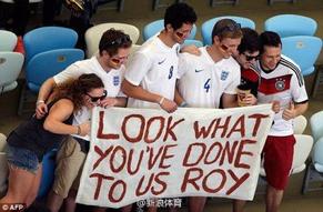 英格兰球迷也投靠“德军”了……他们还打出了标语:“罗伊(霍奇森)你看你把我们逼成什么样子了!”