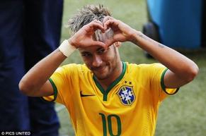 明星球员内马尔赛场示爱