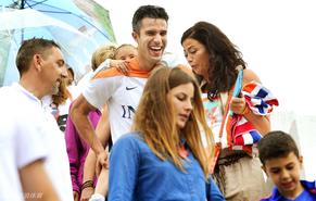 范佩西的美艳娇妻陪伴在现场